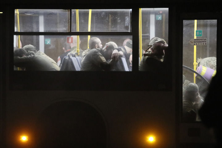5月20日,載著烏克蘭武裝人員的巴士抵達俄軍控制的奧列尼夫卡鎮(zhèn)。俄羅斯國防部發(fā)言人科納申科夫20日說,俄武裝部隊已經完全控制馬里烏波爾亞速鋼鐵廠的地下設施。新華社發(fā)(維克托攝)