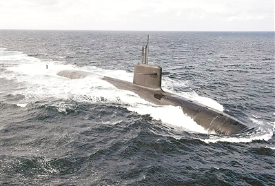 上圖為法國(guó)凱旋級(jí)戰(zhàn)略核潛艇4號(hào)艇“猛烈”號(hào)。