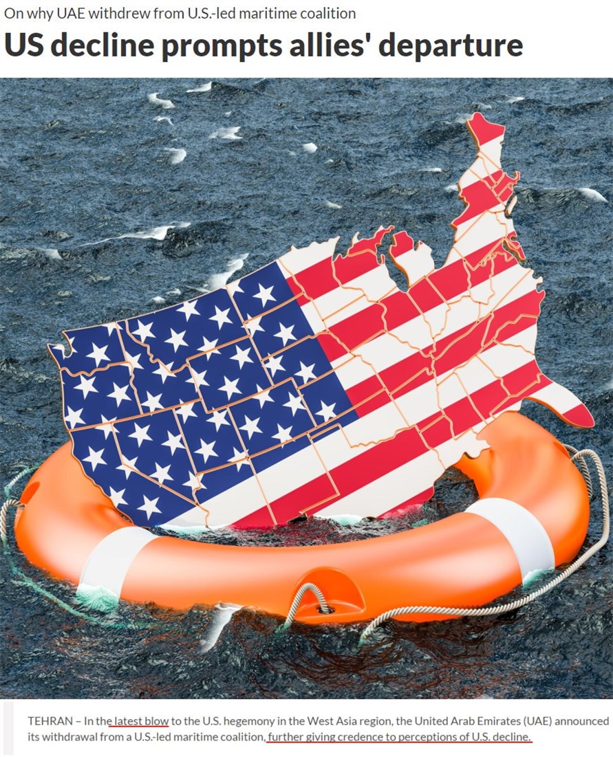伊朗《德黑蘭時報》報道認為,阿聯(lián)酋退出美國主導(dǎo)的聯(lián)合海上部隊,是中東地區(qū)國家對美國霸權(quán)的明確回應(yīng),也進一步證實了美國在該地區(qū)影響力的衰落。