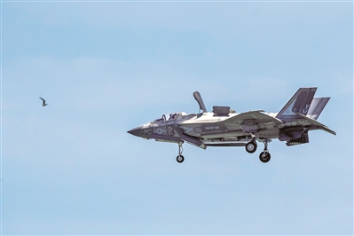 正在垂直降落的F-35B戰(zhàn)斗機。