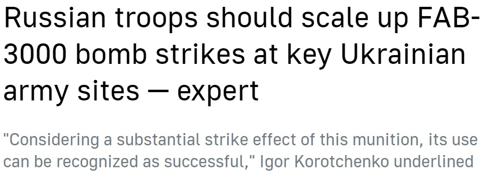 俄羅斯媒體近日?qǐng)?bào)道稱,俄軍首次在特別軍事行動(dòng)區(qū)域內(nèi)使用FAB-3000高爆航空炸彈。