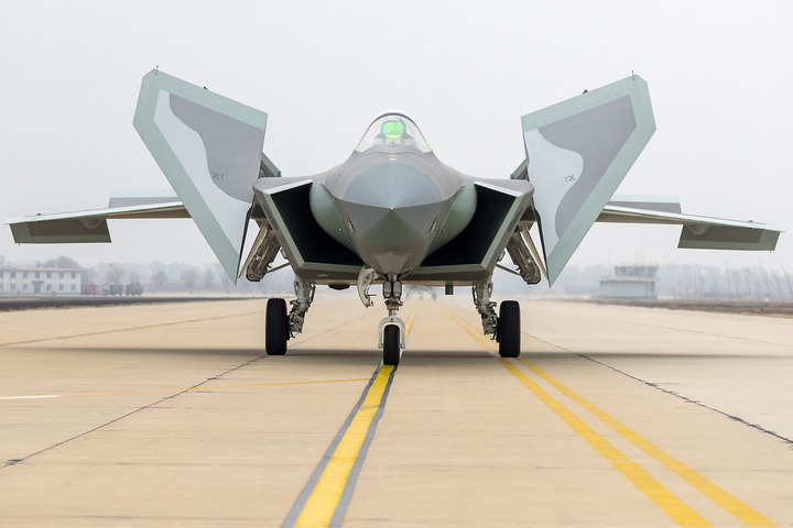 ↑停在跑道上的空軍殲-20戰(zhàn)機(jī)(3月3日攝)。新華社發(fā)(楊盼 攝)