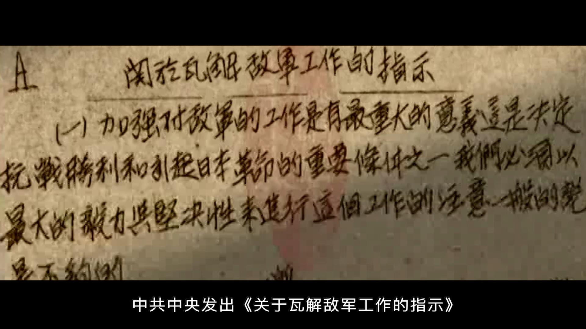 毛澤東曾經(jīng)指出:“我們的勝利不但是依靠我軍的作戰(zhàn),而且依靠敵軍的瓦解。”1940年4月6日,中共中央發(fā)出《關(guān)于瓦解敵軍工作的指示》,指出瓦解敵軍工作對(duì)爭(zhēng)取抗戰(zhàn)勝利具有重要意義。