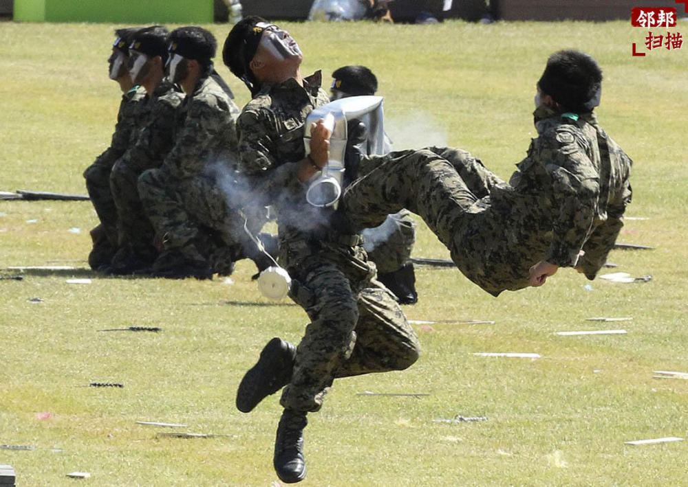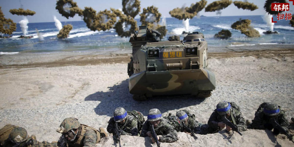 比如春節(jié)假期(注:韓國從正月初一到初三放假3天)過后還不到10天,2017年2月9日,韓軍第11機(jī)步師就冒著冬季惡劣氣候,在江原道洪川江一帶舉行裝甲車破冰渡河演習(xí)。3月3日,韓國海軍陸戰(zhàn)隊(duì)在慶尚北道浦項(xiàng)市海岸附近實(shí)施飛艇跳傘演習(xí)。9月下旬,韓國空軍C-130運(yùn)輸機(jī)在慶尚南道宜寧郡一帶進(jìn)行了戰(zhàn)車空投演練……