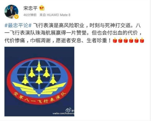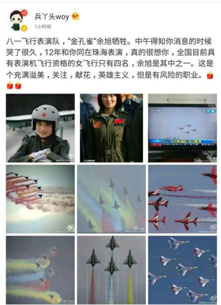 ▲2012年曾經(jīng)和余旭共同參加過(guò)珠海航展飛行表演的戰(zhàn)友也發(fā)微博哀悼