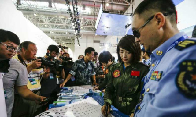▲珠海航展上,余旭來(lái)到空軍招飛展館,簽名、發(fā)宣傳品