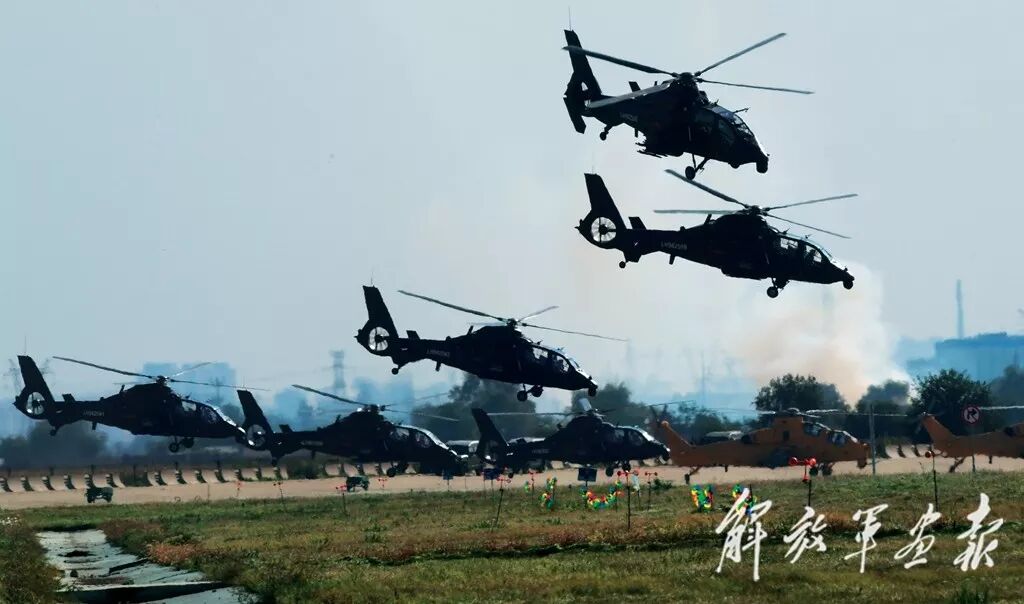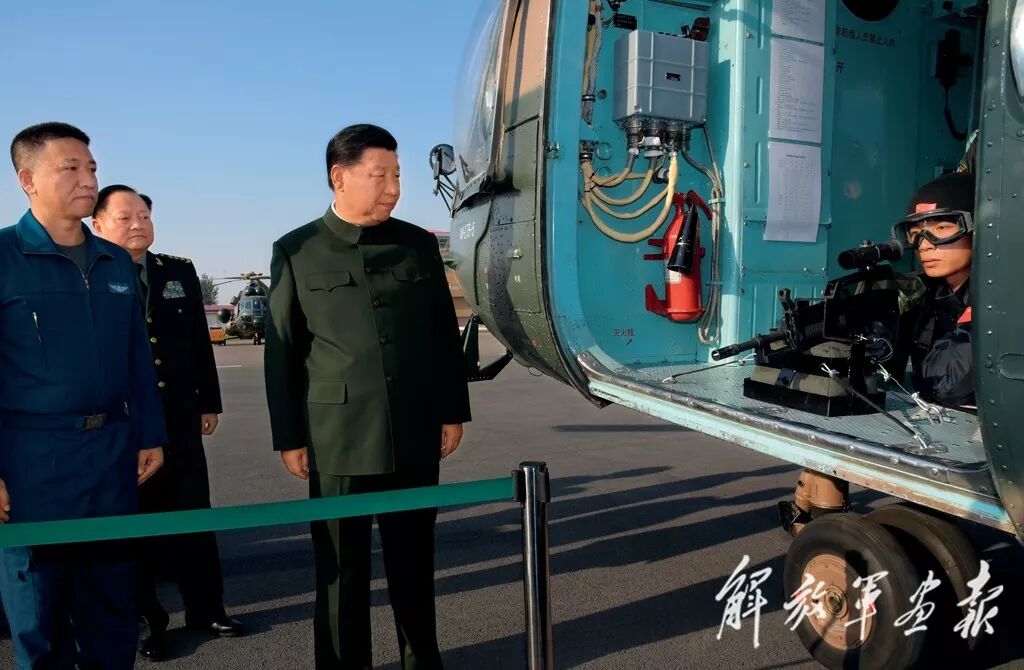 習(xí)近平對實(shí)戰(zhàn)化軍事訓(xùn)練高度重視,視察期間,他登上79集團(tuán)軍某陸航旅機(jī)場塔臺,實(shí)地觀看部隊(duì)行動演練。數(shù)十架直升機(jī)按戰(zhàn)斗編隊(duì)組成先遣偵察群、火力突擊群、機(jī)降突擊群與空中保障隊(duì)、火力支援群依次通過塔臺,超低空隱蔽機(jī)動、分散突防及空中格斗、 戰(zhàn)術(shù)規(guī)避突防、戰(zhàn)術(shù)編隊(duì)抵近偵察、機(jī)降突擊、空中近距火力支援等戰(zhàn)術(shù)課目輪番展開。