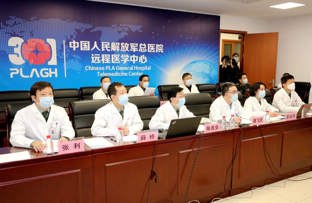 解放軍總醫(yī)院遠(yuǎn)程醫(yī)學(xué)中心第10會(huì)診室,陳良安教授和第一醫(yī)學(xué)中心重癥醫(yī)學(xué)科主任周飛虎、心內(nèi)科主任醫(yī)師薛橋、醫(yī)學(xué)檢驗(yàn)中心主任技師羅燕萍、腎臟病科主任醫(yī)師張利、放射診斷科主任醫(yī)師趙紹宏等專(zhuān)家緊盯著面前的電子屏幕,實(shí)時(shí)上傳的患者病歷、生化指標(biāo)等檢查結(jié)果一目了然?;鹕裆结t(yī)院病房,主管醫(yī)生通過(guò)中國(guó)移動(dòng)床旁會(huì)診車(chē),詳細(xì)介紹患者病史,與北京會(huì)診專(zhuān)家實(shí)時(shí)連線。