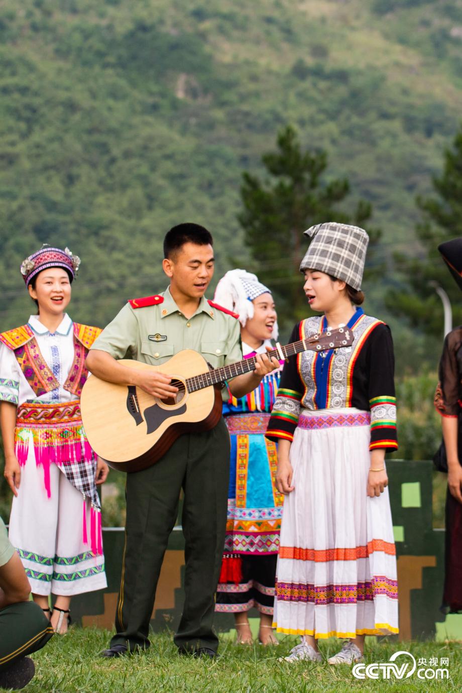 武警官兵與駐地“民族合唱隊”共同演唱軍歌和壯鄉(xiāng)民歌,慶祝“八一”建軍節(jié)的到來。 (何唯一 余海洋 攝影報道)