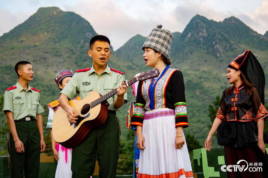 武警官兵與駐地“民族合唱隊”共同演唱軍歌和壯鄉(xiāng)民歌,慶祝“八一”建軍節(jié)的到來。 (何唯一 余海洋 攝影報道)