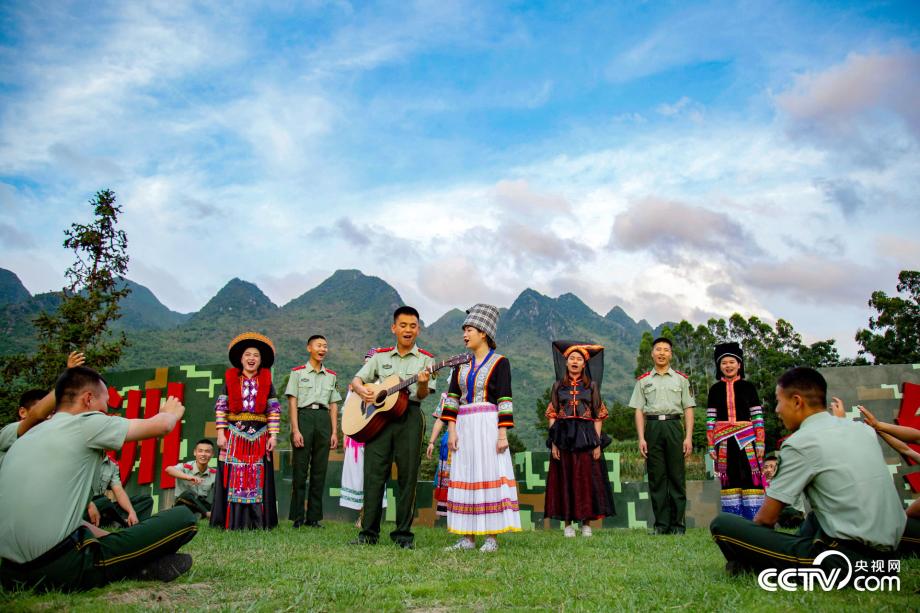 武警官兵與駐地“民族合唱隊”共同演唱軍歌和壯鄉(xiāng)民歌,慶祝“八一”建軍節(jié)的到來。 (何唯一 余海洋 攝影報道)
