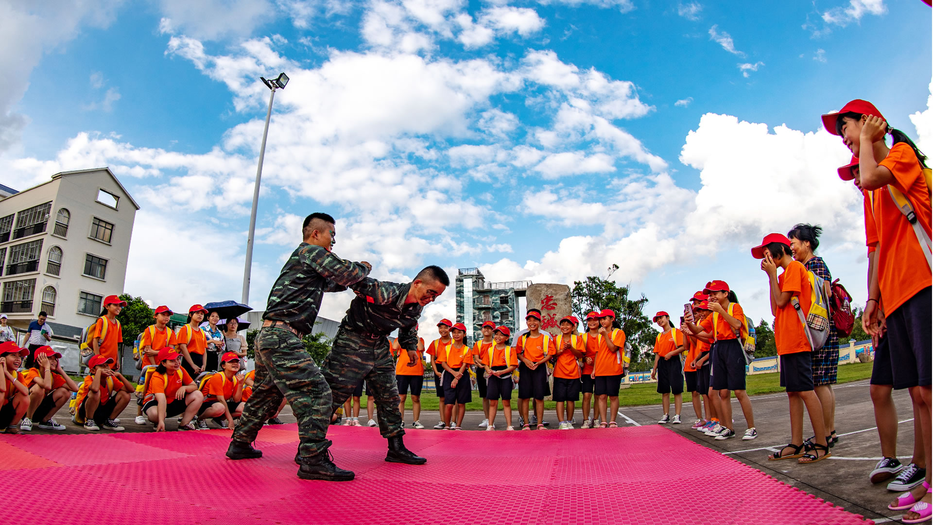 下午3時,四輛滿載老師與小朋友的大巴車緩緩駛進中隊的大門,參觀人員到位,活動也正式拉開帷幕。