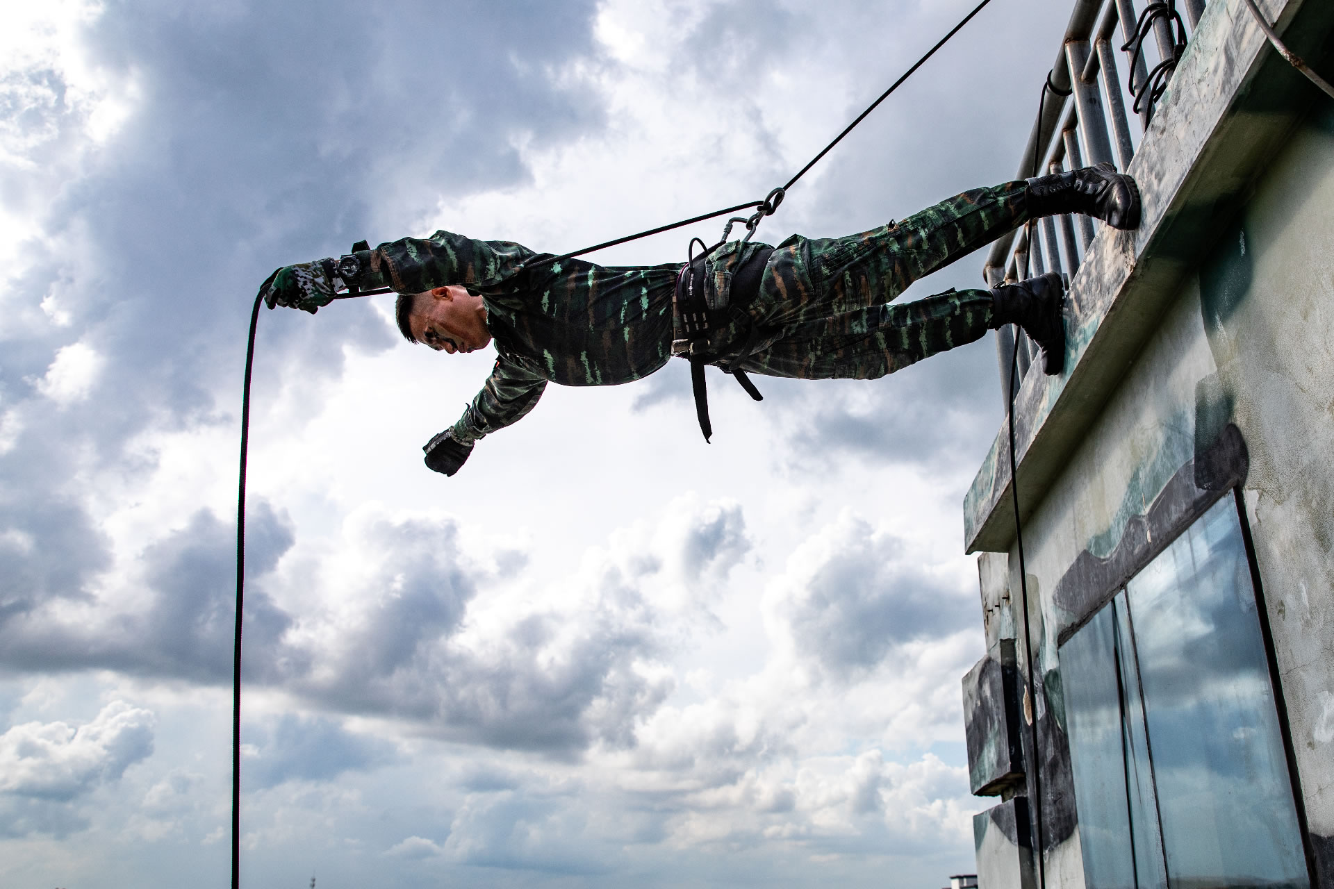 武警特戰(zhàn)隊(duì)員進(jìn)行倒立下