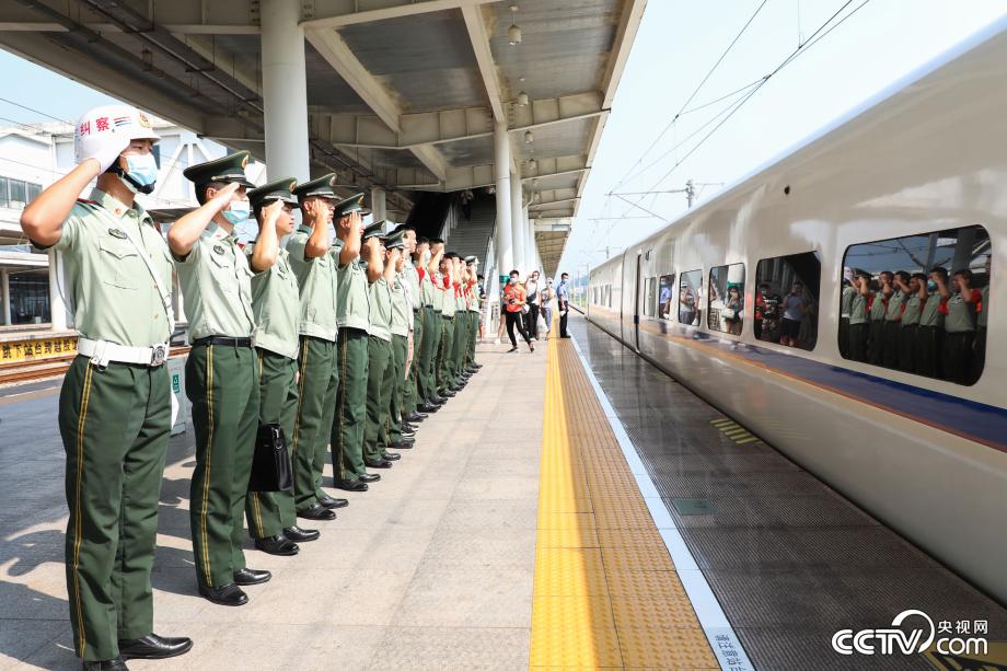 武警官兵向退伍老兵敬禮告別。(果志遠(yuǎn))