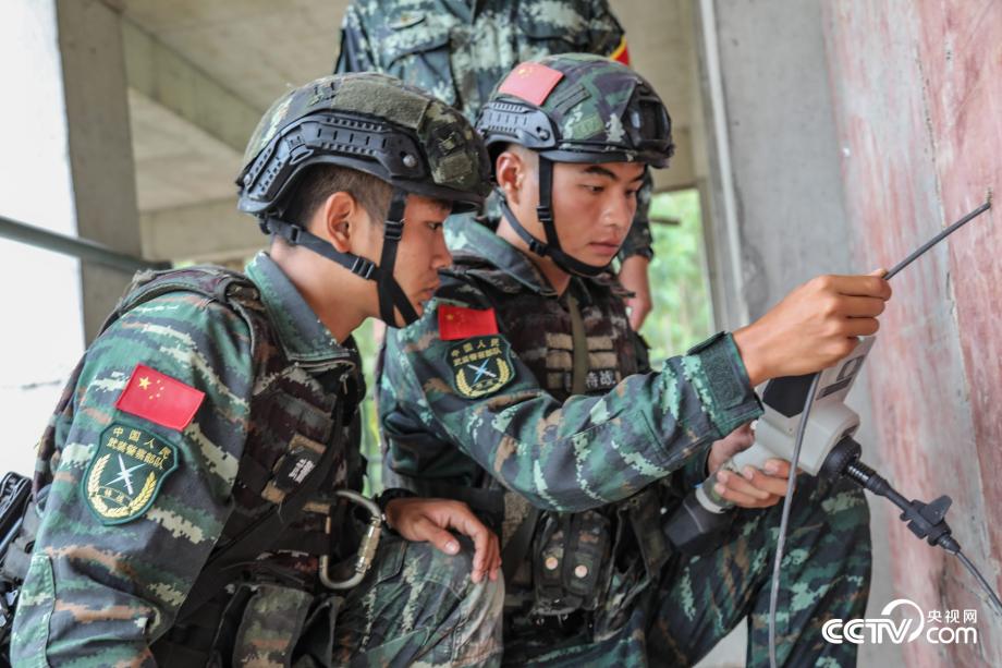 參賽隊員運用偵察器材對任務(wù)區(qū)域進(jìn)行偵察。(俞偉國、果志遠(yuǎn)、余海洋 攝影報道)