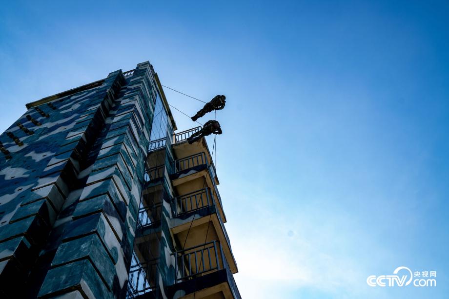 特戰(zhàn)隊(duì)員高空端腹索降。(柴浩)