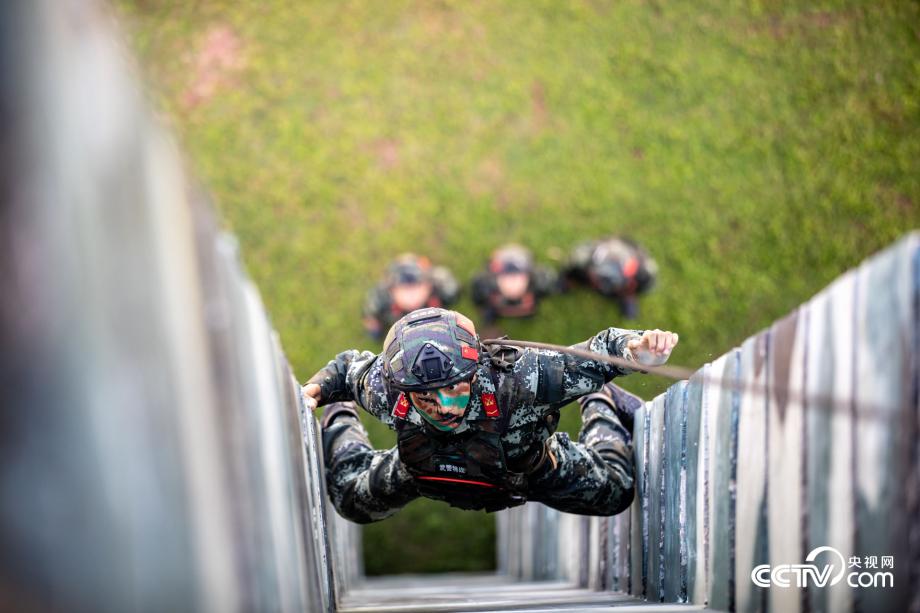 特戰(zhàn)隊(duì)員夾墻攀登。(柴浩)