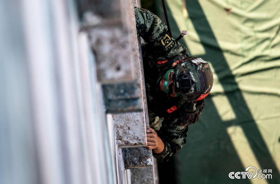 特戰(zhàn)隊員攀爬窗戶。(柴浩)