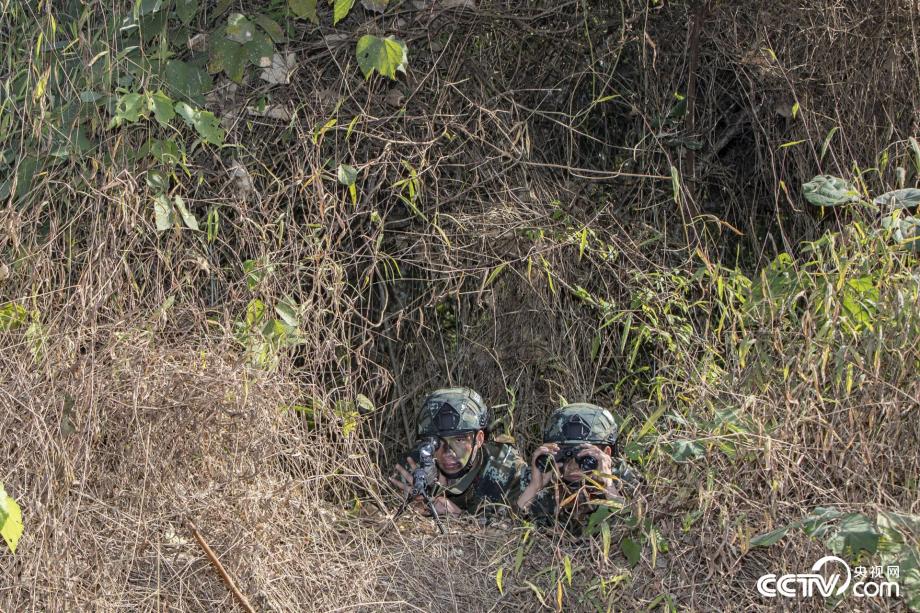 狙擊小組隱蔽偵察戰(zhàn)場(chǎng)情況。