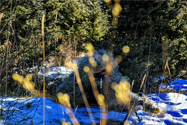 ↑狙擊手隱蔽觀察敵情。劉沛 攝