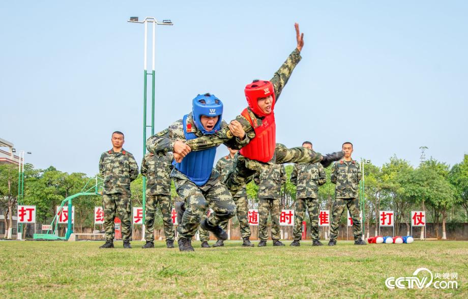 武警官兵正在進(jìn)行擒敵訓(xùn)練。