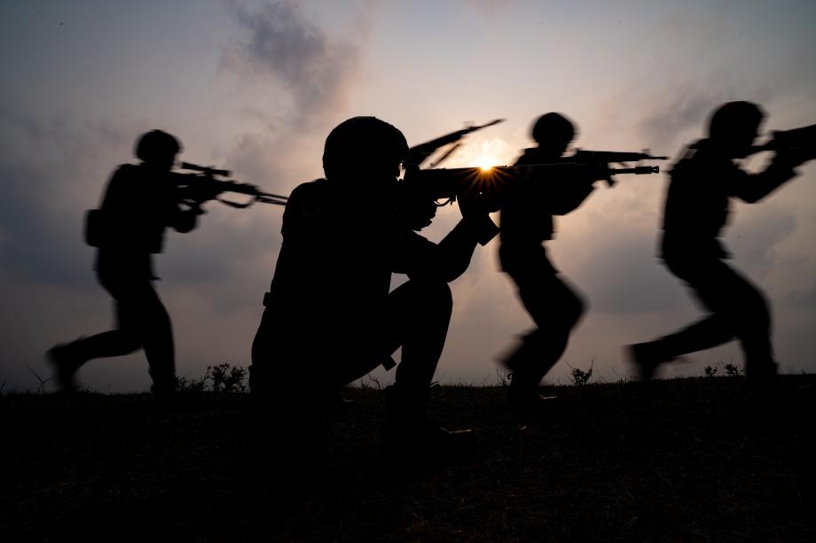 武警官兵進(jìn)行戰(zhàn)術(shù)訓(xùn)練。柴浩攝影