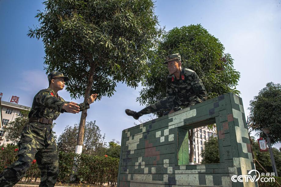 武警廣西總隊(duì)南寧支隊(duì)官兵正在進(jìn)行快速通過(guò)矮墻訓(xùn)練。