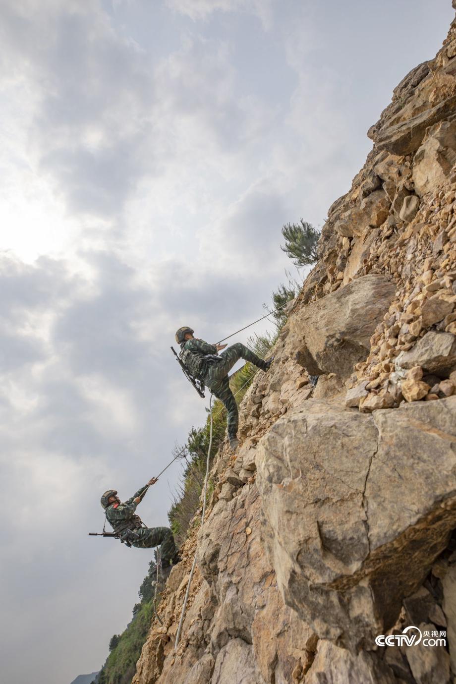 特戰(zhàn)隊(duì)員在進(jìn)行山地攀登。
