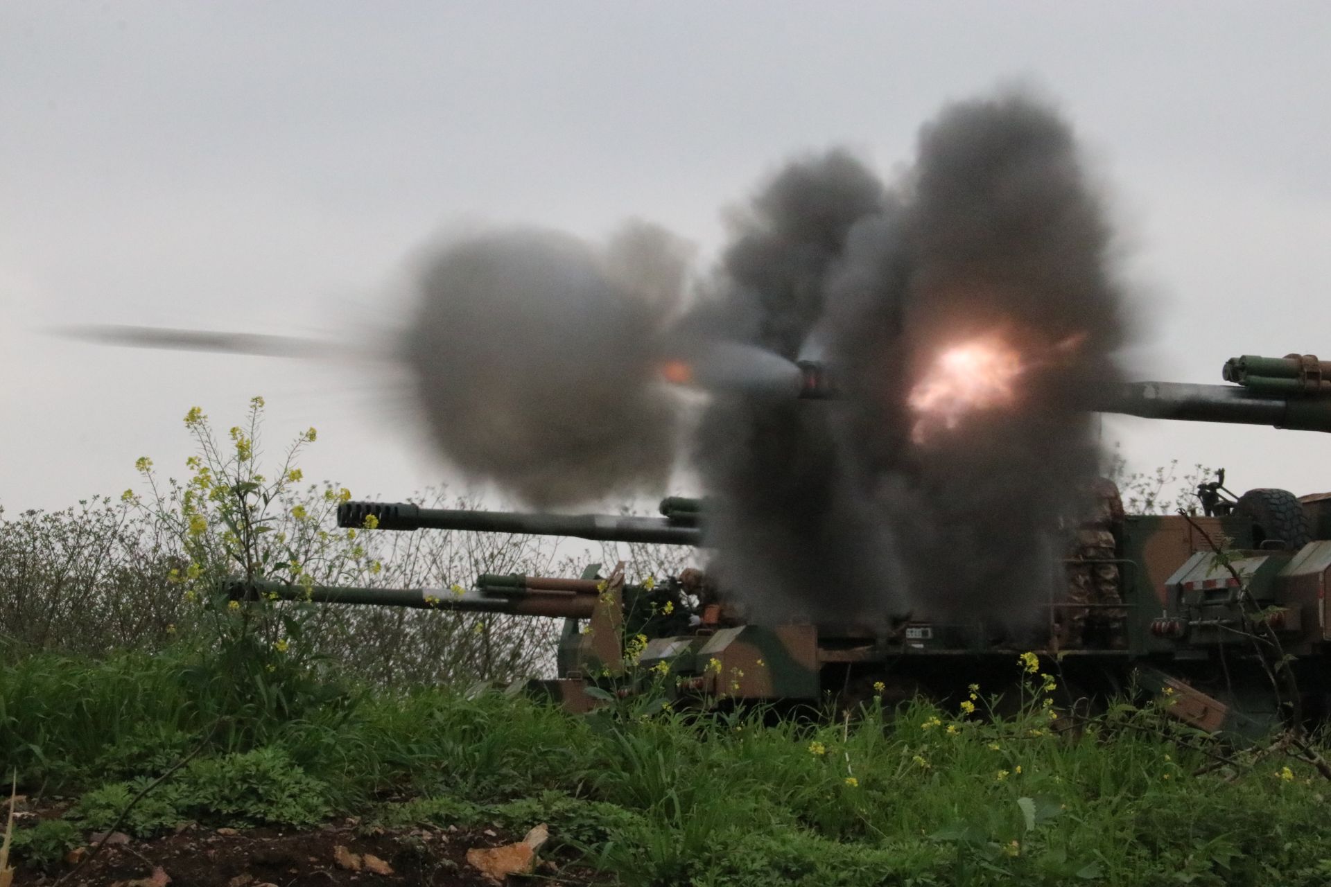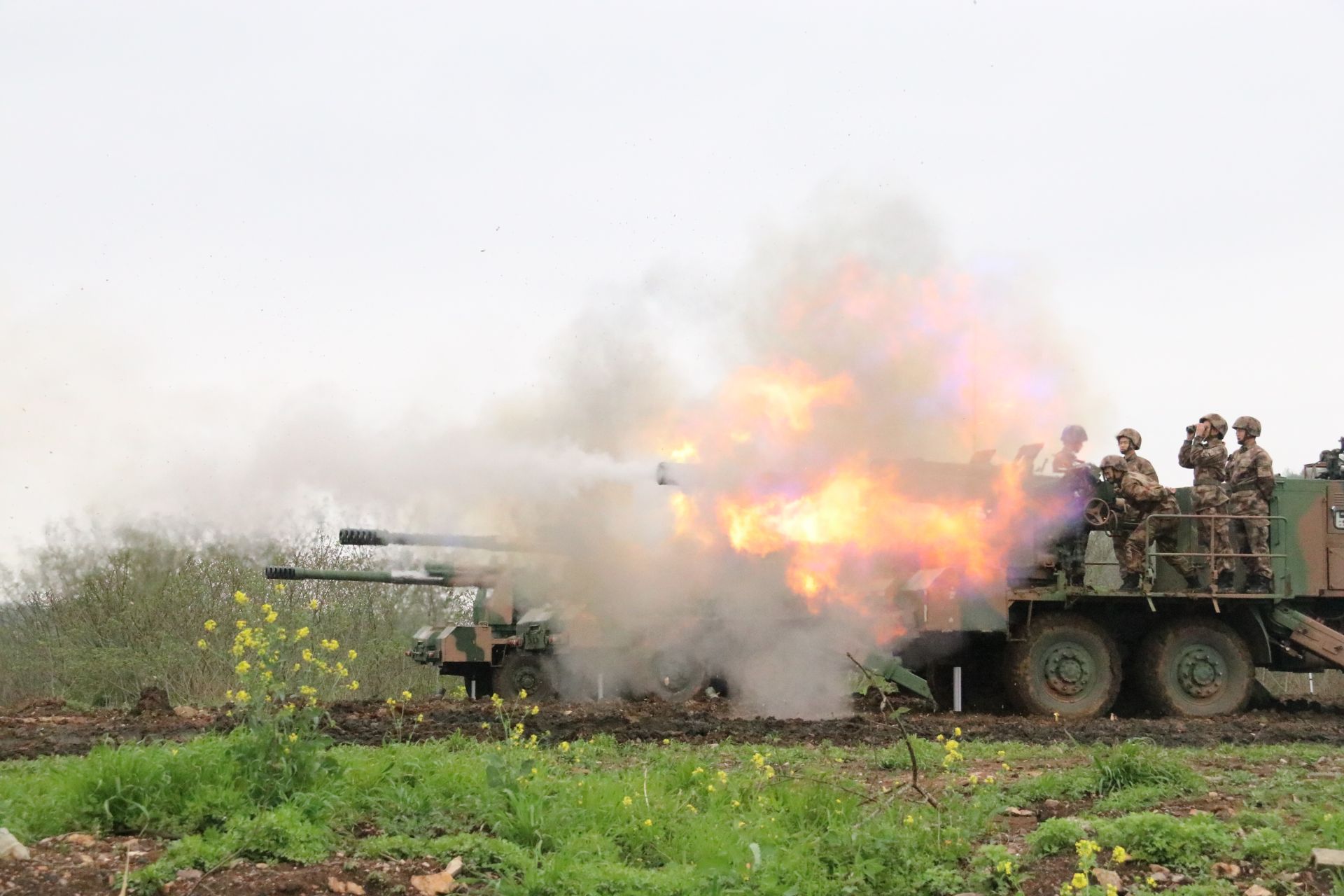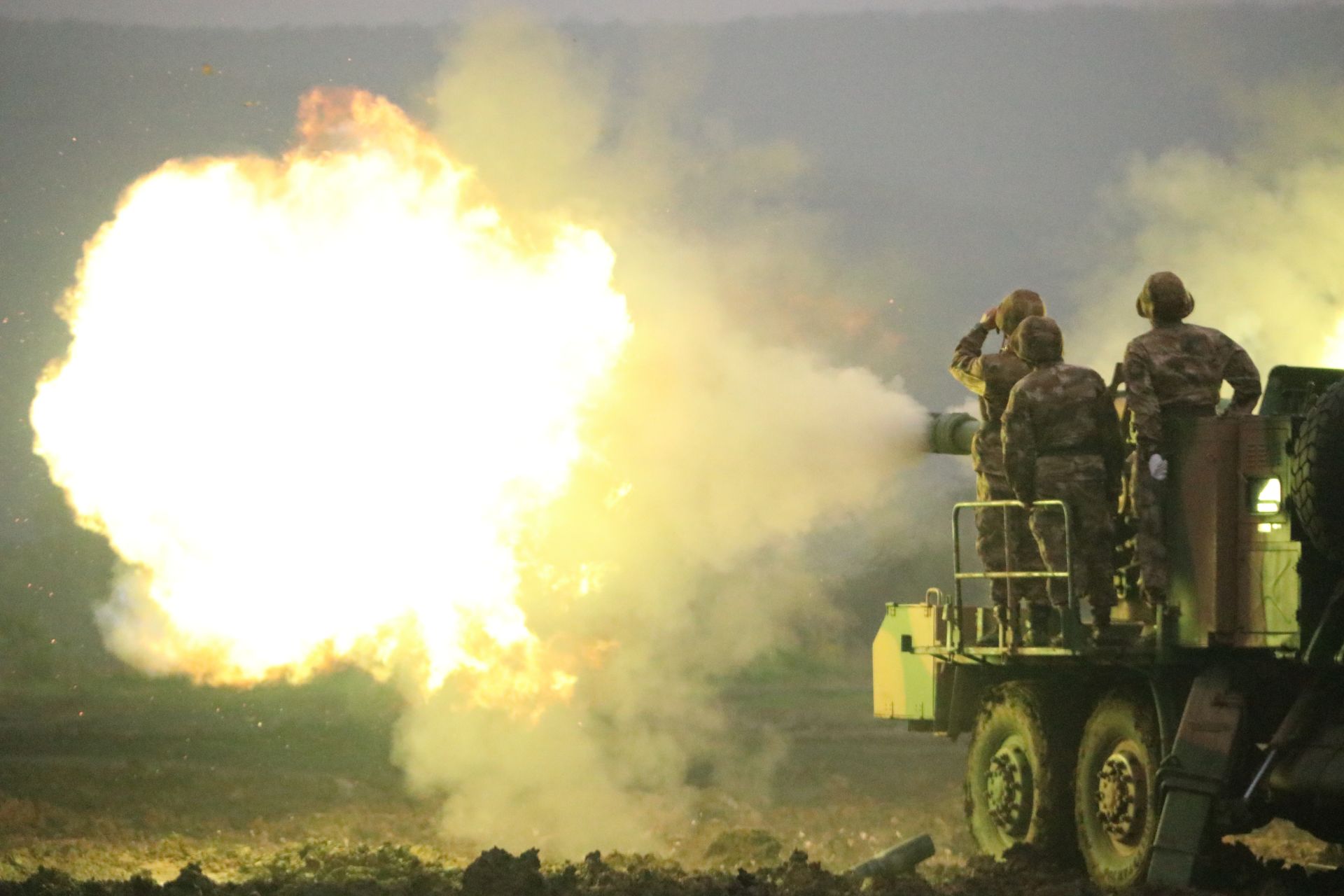雨落地,炮出膛,戰(zhàn)地“黃花”分外香。三發(fā)信號彈升起,撕裂寧靜的天際,“預(yù)備,3.2.1放!” 剎那間數(shù)發(fā)炮彈如利劍出鞘,炮火聲聲震天闕,硝煙彌漫演訓(xùn)場。
