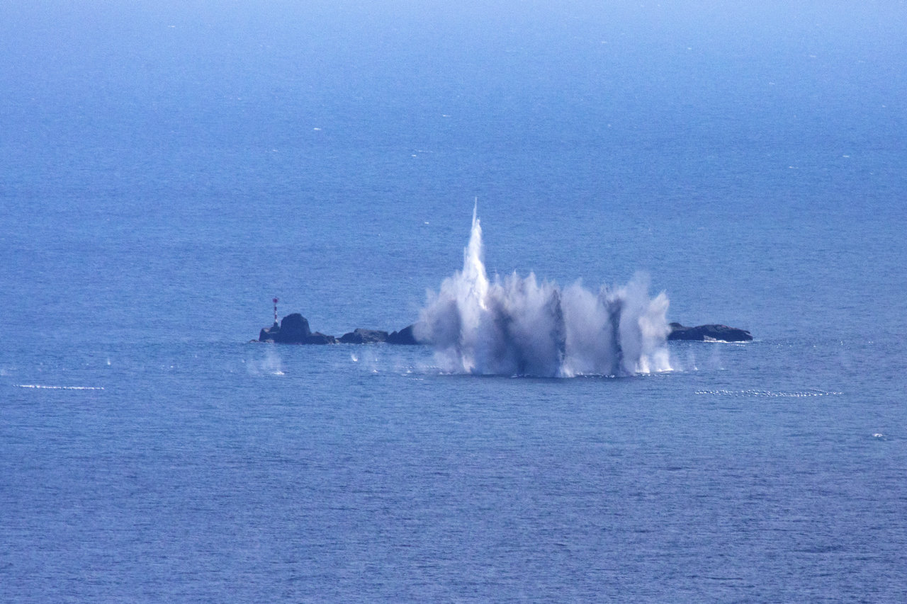 數(shù)千枚實(shí)彈向漂浮在海上的靶標(biāo)