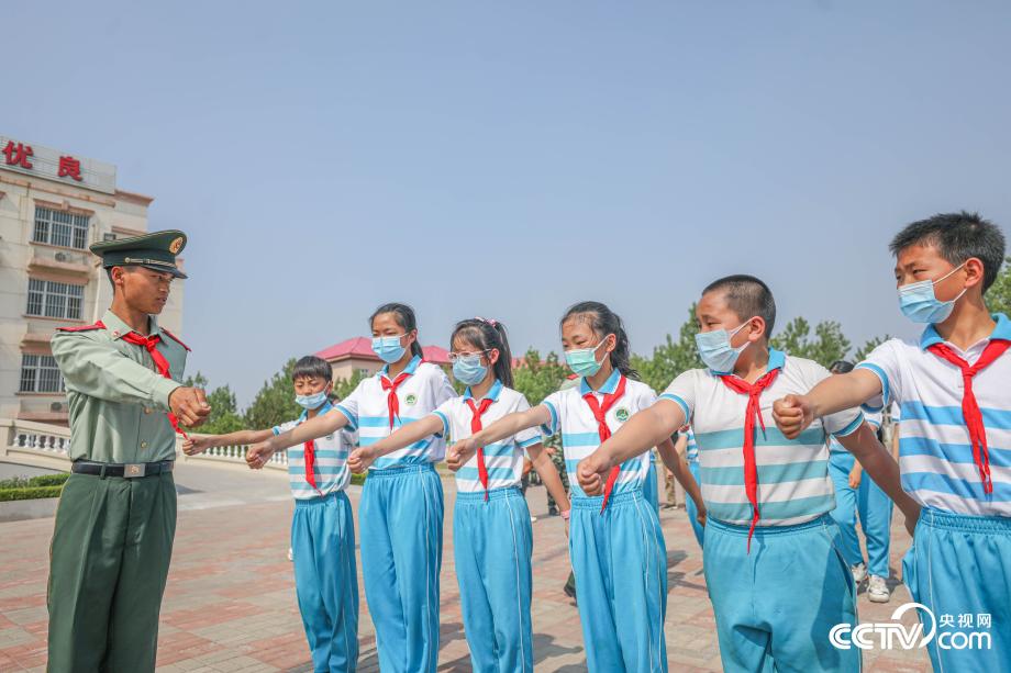 隊列演示后,官兵們組織小學(xué)生進(jìn)行隊列教學(xué)。