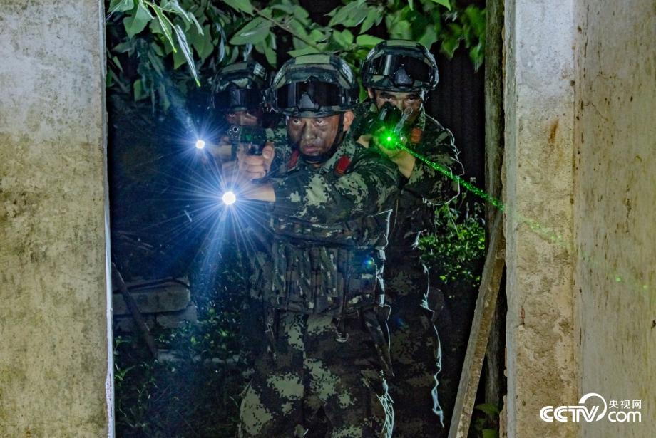 武警官兵交替掩護接近目標藏匿區(qū)域。