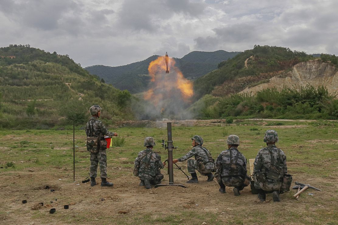 官兵正在進(jìn)行炮機(jī)炮實(shí)彈射擊