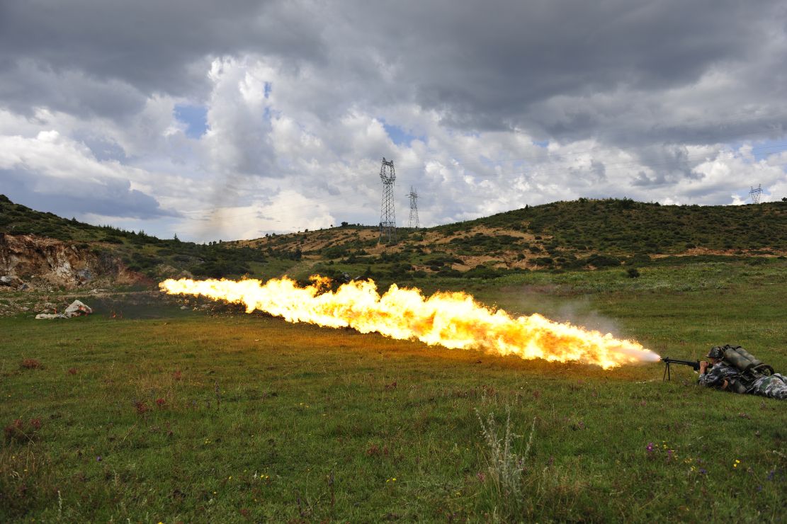 官兵正在進(jìn)行噴火專業(yè)演練