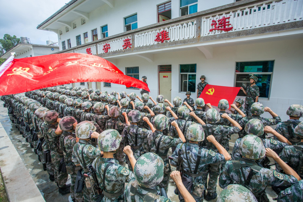 第75集團(tuán)軍某紅軍旅官兵面向黨旗宣誓,重溫入黨誓詞