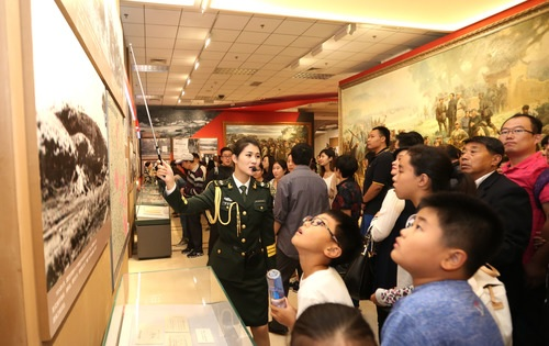 市民和游客在北京中國(guó)人民革命軍事博物館,參觀“英雄史詩(shī) 不朽豐碑——紀(jì)念中國(guó)工農(nóng)紅軍長(zhǎng)征勝利80周年主題展覽”。殷剛 攝