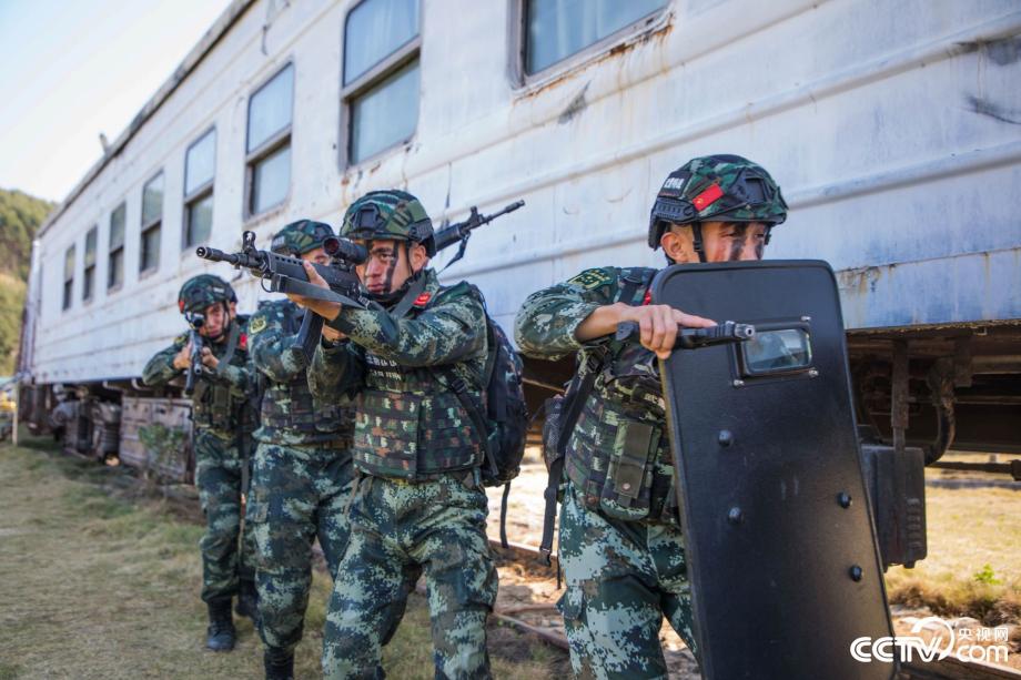 武警官兵隱蔽接近搜索目標(biāo)。