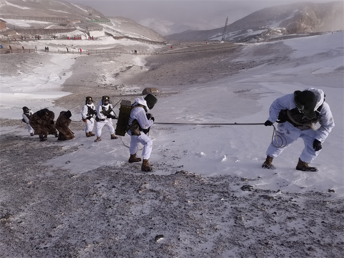 還有不到200米的距離了,只要通過(guò)這段路,就可以到達(dá)天文峰了。突然,一陣狂風(fēng)吹來(lái),新兵唐偉猝不及防,腳下的積雪沒(méi)有踩實(shí),瞬間連同裝具滑倒在地并向下滑落,前后兩名官兵也跟著身體傾斜向坡下滑落。