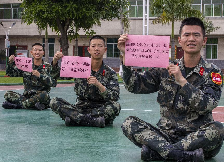在母親節(jié)來(lái)臨之際,武警廣西總隊(duì)梧州支隊(duì)的官兵開(kāi)展形式多樣的活動(dòng),向遠(yuǎn)方的母親送上祝福,表達(dá)對(duì)母親的思念和愛(ài)。(柯江濤)