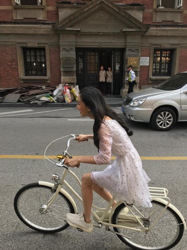 9月22日晚,有網(wǎng)友分享了一組偶遇Baby騎車的照片,照片中Baby身穿薄紗裙,騎著自行車的她簡(jiǎn)直少女十足!
