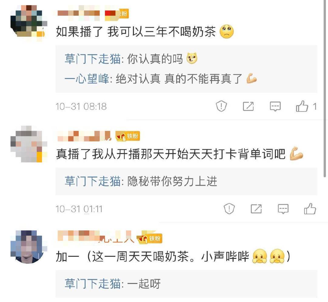 之前一直催上架的李易峰粉絲苦等兩年多,甚至聲稱要是定檔了就三年不喝奶茶,還有人稱半年不吃辣,這些正能量的flag都非??简?yàn)自律性,也可見粉絲用心良苦。