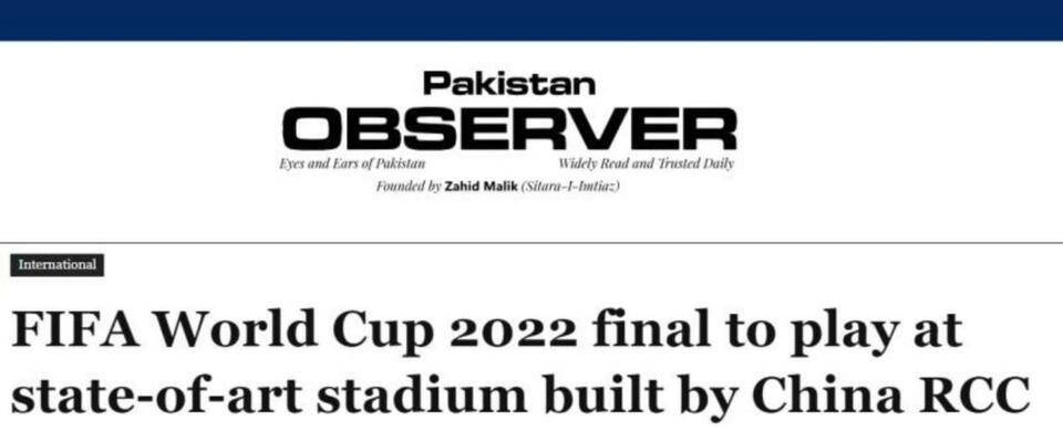 《巴基斯坦觀察家報(bào)》11月21日?qǐng)?bào)道稱(chēng),2022年卡塔爾世界杯決賽將在由中國(guó)鐵建承建的“最先進(jìn)的體育場(chǎng)館”舉行。參與該項(xiàng)目的巴基斯坦工程經(jīng)理穆罕默德·賽義夫·伊賈茲(Mu-hammad Saif Ijaz)高度評(píng)價(jià)同事們?cè)诟邷叵聻榻ㄔO(shè)盧賽爾體育場(chǎng)付出的努力。