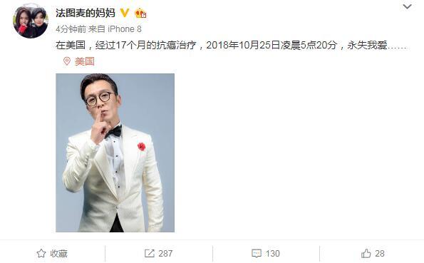 原標題:太突然了!主持人李詠因癌癥在美國去世,享年50歲! “在美國,經(jīng)過17個月的抗癌治療,2018年10月25日凌晨5點20分,永失我愛…… ” 李詠妻子哈文29日在微博上發(fā)布訃告,稱李詠2018年10月25日凌晨5點20分經(jīng)過17個月的抗癌治療,在美國去世,享年50歲。 不少網(wǎng)友在微博中表...