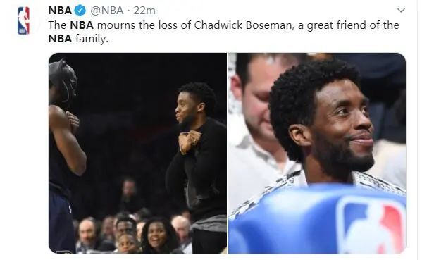 除了漫威“英雄”以外,NBA官推也發(fā)文悼念:“NBA為查德維克·博斯曼的逝去而哀悼,(他是)NBA大家庭一位非常好的朋友。”