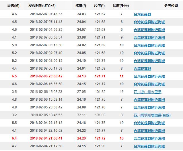 花蓮附近海域4日晚曾連續(xù)發(fā)生5級以上地震,最大震級為6.4級。自4日至今,該區(qū)域已發(fā)生超過百次有感地震。
