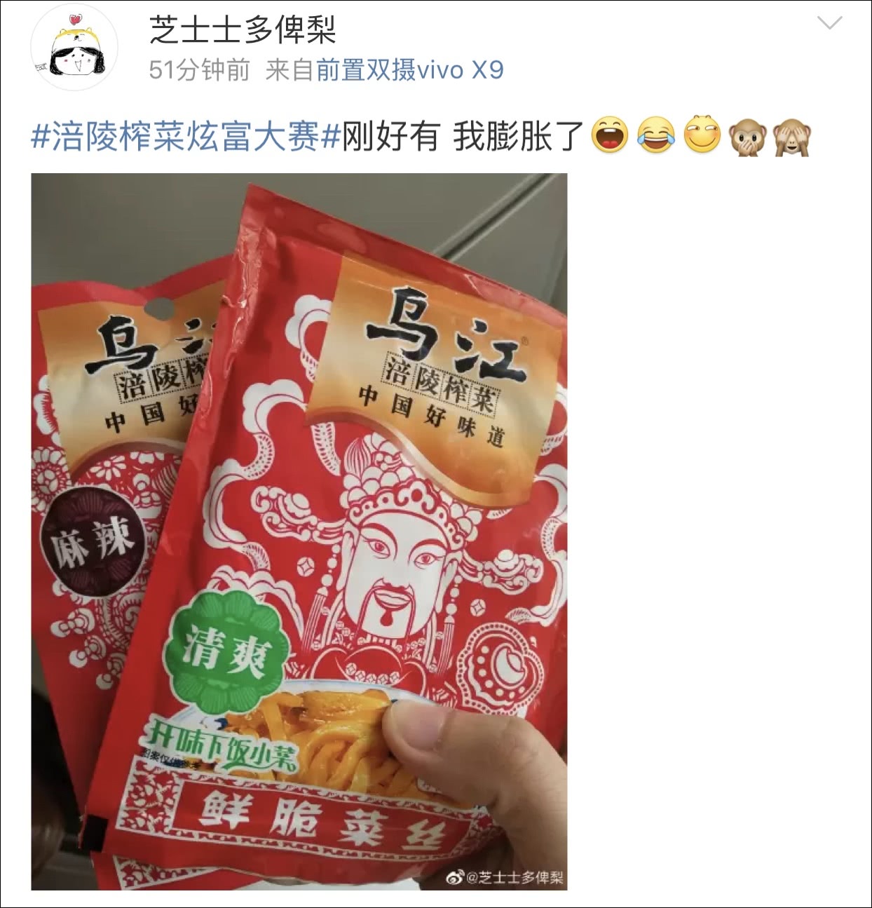 目前,涪陵榨菜就已經(jīng)在借著這一波“吃不起榨菜”的搞笑事件,做起了新一輪營銷。