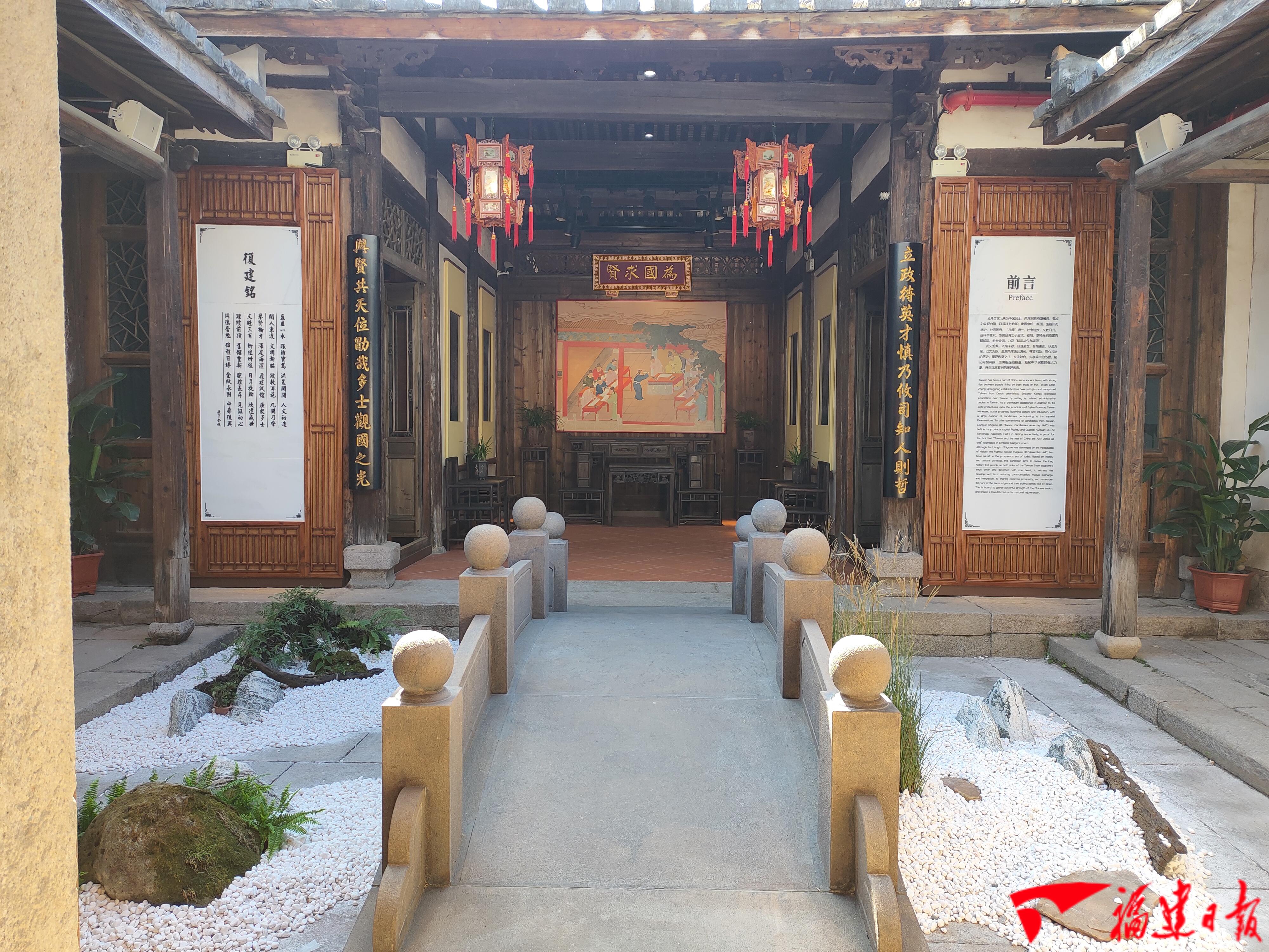 復(fù)建的福州臺灣會館是兩岸淵源密切、臺灣是中國不可分割一部分的歷史見證;兩岸交流交往、經(jīng)濟社會融合發(fā)展成果的展示窗口;溝通聯(lián)誼服務(wù)團結(jié)臺胞、增進兩岸同胞感情的臺胞之家;傳承弘揚中華文化、打造臺胞臺企登陸的第一家園的工作平臺四個功能定位,將院落分為歷史主題展區(qū)、當(dāng)代專題展區(qū)、交流活動區(qū)和配套功能區(qū)四大版塊,具有展示收藏、聯(lián)誼聯(lián)絡(luò)、合作互動、學(xué)習(xí)交流和學(xué)術(shù)研究等多種功能,可為兩岸開展文化、教育、經(jīng)濟、青少年、人才、民間基層等多個領(lǐng)域交流合作提供新平臺。