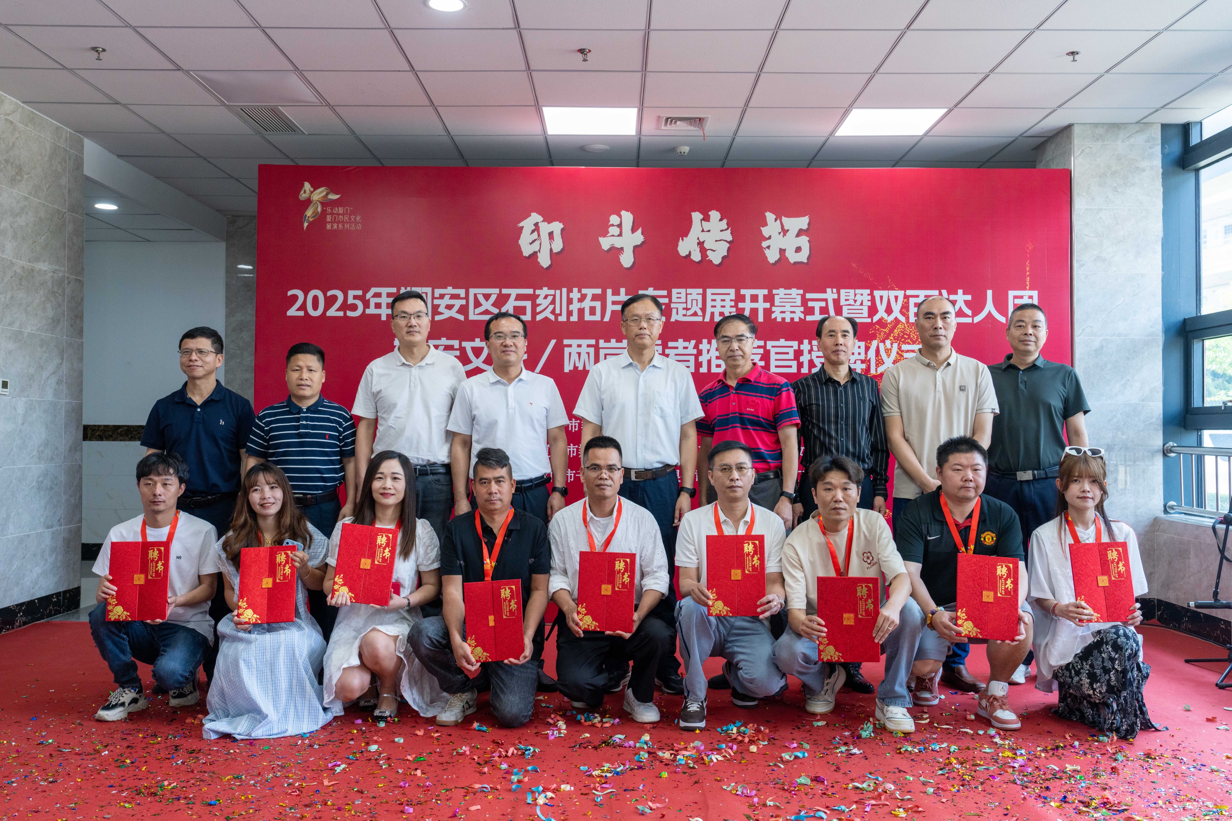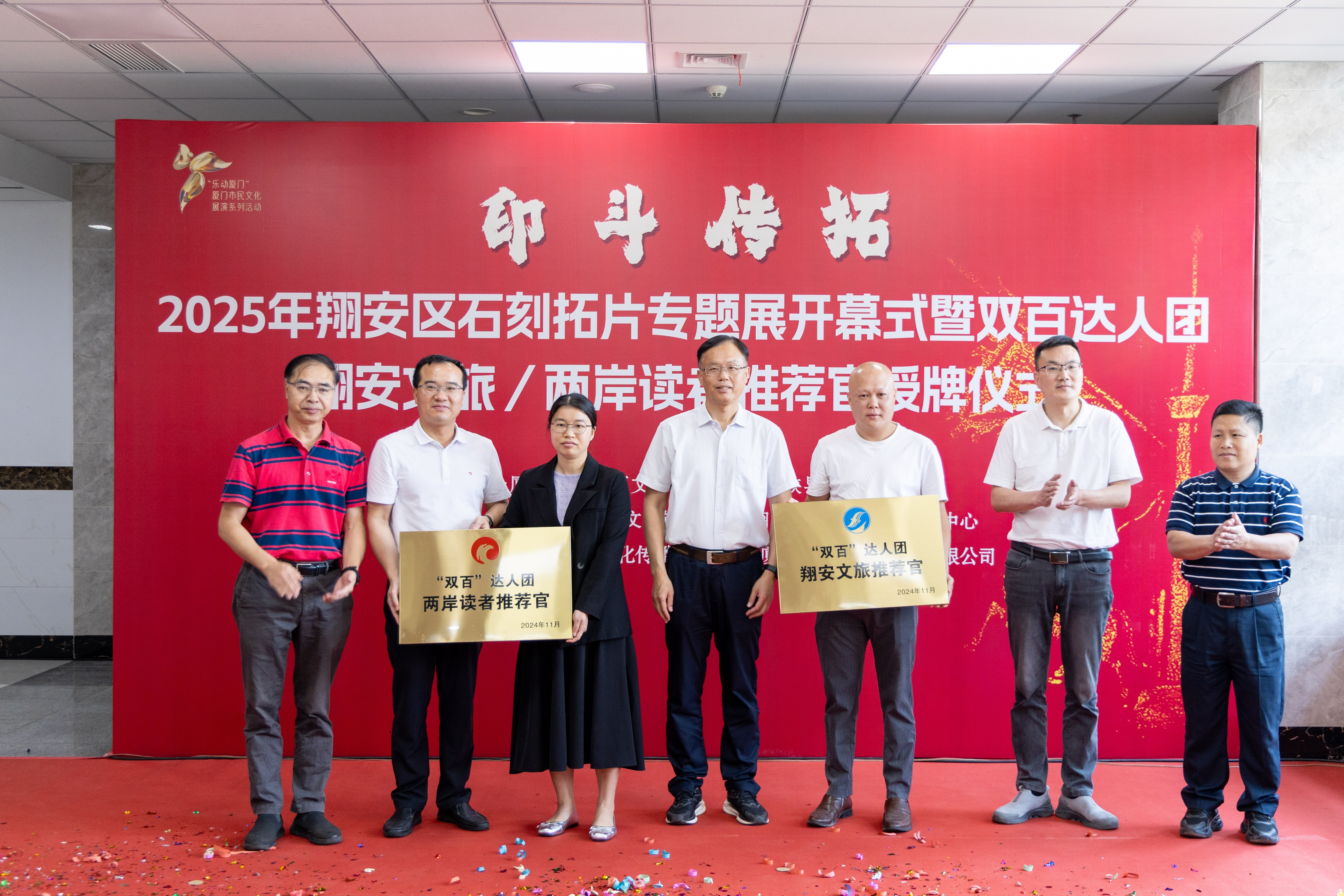 臺海網(wǎng)4月30日訊(海峽導報者 曾藝軒)古韻悠揚,嘉賓云集!4月30日,翔安區(qū)文化館書畫展廳里,由翔安區(qū)文化和旅游局、海峽導報社主辦的“印斗傳拓”2025年翔安區(qū)石刻拓片專題展開幕式暨雙百達人團——翔安文旅/兩岸讀者推薦官揭牌儀式正式拉開帷幕。翔安區(qū)政府副區(qū)長黃亞祥、海峽導報社社長黃運來、翔安區(qū)委宣傳部常務副部長林瑞聲、翔安區(qū)文旅局局長吳善營等人參加了活動。