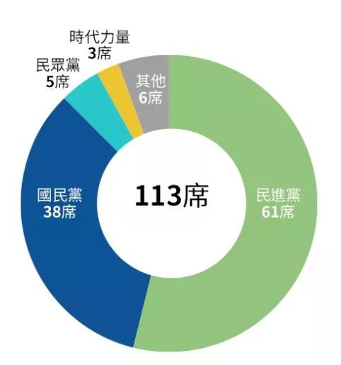 此次共有19個政黨登記參選,爭取34席不分區(qū)“立委”,民進黨與國民黨各拿下33%左右的得票率、各分得13席不分區(qū)“立委”,兩黨雖然幾乎一樣多,但前段班的小黨多屬泛綠,泛藍則全軍覆沒。其中臺北市長柯文哲選前倉促創(chuàng)立的臺灣民眾黨,起手式就以11%的得票率分得5席,一舉躍上第三大黨位置,“時代力量”也維持一定實力,獲7%選票分得3席,連新創(chuàng)的“臺灣基進黨”也有3%。把這幾個泛綠小黨得票率加總起來,就有20多趴,幾乎與藍綠兩黨三分天下。