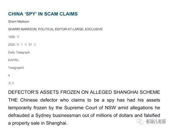 而這次近在咫尺的指控,王立強(qiáng)想抵賴,恐怕也難了。目前,新南威爾士州最高法院已經(jīng)開庭受理,并頒令凍結(jié)了王立強(qiáng)在澳的資產(chǎn)。